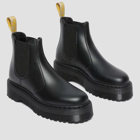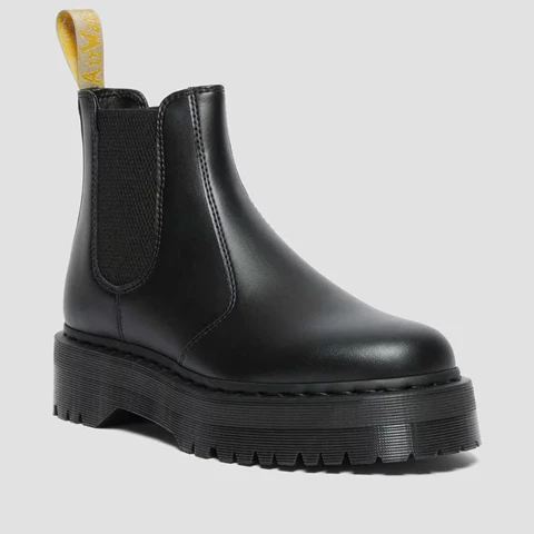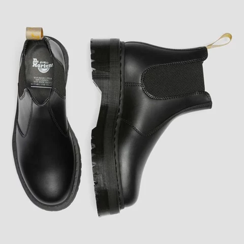 Il nostro stivale Chelsea vegan-friendly non utilizza prodotti di origine animale. Realizzato con la nostra pelle sintetica Felix Rub Off. Robusto e durevole come ci si aspetta da DM's. Facile da indossare e da togliere grazie ai pannelli laterali elasticizzati. In piedi sulla nostra suola Quad Bex impilata. 100% vegan. Nessun compromesso sull'atteggiamento.